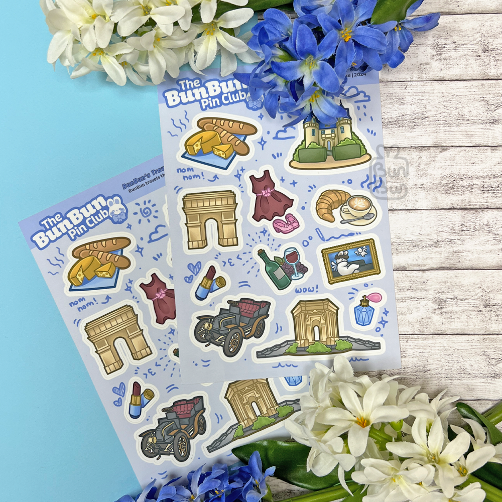 Der BunBun Pin Club Februar – Stickerbogen (Frankreich).